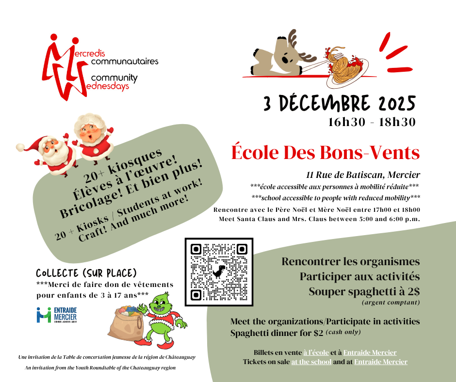Le Père Noël, la Mère Noël et le Grinch seront présents.